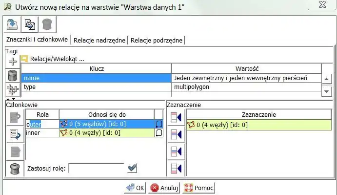 Krótki poradnik tworzenia prostej relacji w JOSM
