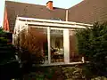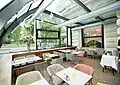 | Budynek lub pomieszczenie z pokryciem dachowym i ścianami wykonanymi ze szkła, wykorzystywany jako oranżeria lub ogród zimowy. |