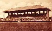 | Trybuna na torach wyścigowych lub boisku sportowym. |