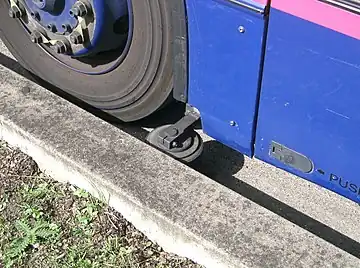 | Trasa autobusu poruszającego się „sztywnym” torem, dzięki zastosowaniu prowadnic i kół prowadzących zamocowanych w pojeździe. |