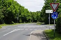 Nie dajmy się zmylić wyspą: nie istnieją żadne przesłanki, że to jest droga jednokierunkowa, czy z pierwszeństwem, więc jest to tylko skrzyżowanie z wyspą umieszczoną dla zwolnienia ruchu kołowego. |
