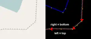 Kierunek linii należy prowadzić tak aby górna część urwiska znajdowała się po lewej stronie linii, a dolna część po prawej stronie.