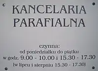 opening_hours=<godziny otwarcia>.operator=<nazwa zakonu lub instytucji religijnej zarządzającej kancelarią>.phone=<z przedrostkiem +48 >.email=*.fax=*.website=*.wheelchair=<dostępność dla wózków inwalidzkich>.