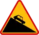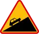 A-22: niebezpieczny zjazd | Na (jeśli zgodnie z kierunkiem drogi w OSM) incline=down lub incline=-xx% (z tabliczki T-9 pod znakiem)