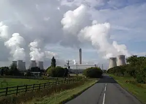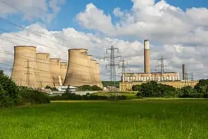 To illustrate the different features of a thermal power station, let's take a look at the Ratcliffe-on-Soar Coal-Fired Power Station in the UK (coordinates 52.8655526, -1.2551273).