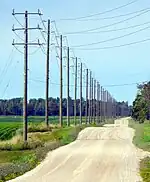 | 44 kV | Subtransmission | Used on some rural subtransmission networks in parts of Southern and Eastern Ontario. | Taller wood poles or H-frames. | |