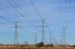 | 500 kV | Transmission | Used on the backbone of the transmission network. | Single- and double-circuit tower carrying bundled conductors | ![]()