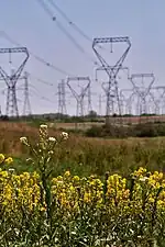 | 115 kV | Transmission and subtransmission | Used across most of the province. Feeds 25 kV distribution networks. | Smaller lattice towers with one ground line, or H-frames. |