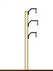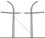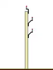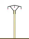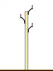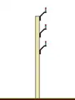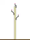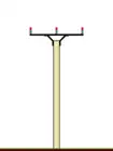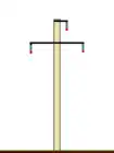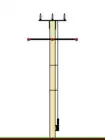 Les poteaux sont des supports d'un seul tenant, acheminés puis plantés au sol. On y ajoute un armement permettant le support des lignes.