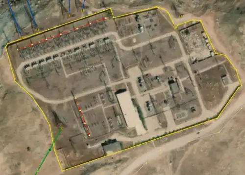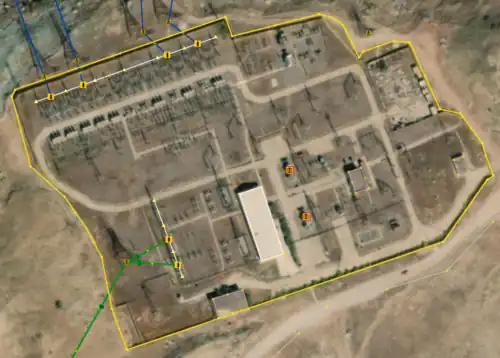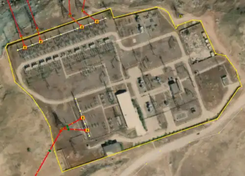 Outdoor substations are often large fenced facilities hosting technical stuff over several acres. They can be landmarks both in landscape and on aerial imagery.