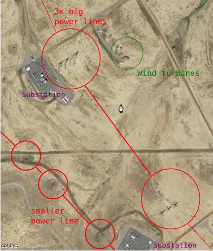 - Pick a random town with Yahoo! aerial imagery available, and look at the fields surrounding the town. Browse around a bit and look for the distinctive shadows of power-lines crossing a field. It helps if you can find somewhere sunny when the images were taken.