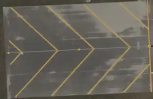 Rendered as: Between runways and taxiways. Potentially also mimicking the chevron pattern
