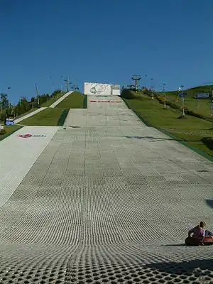It is the same as for area-steps, but rather than highway=steps you use natural=slope (or maybe something else, as some slopes are "man made").