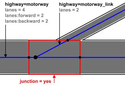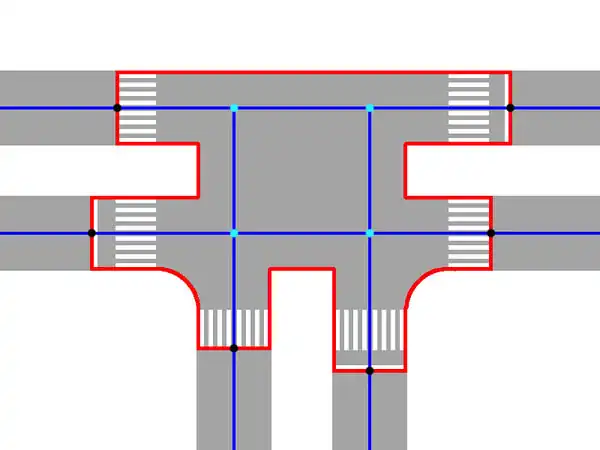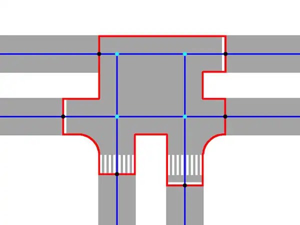 It is not necessary to draw an junction area in case of: service roads, footways, cycleways trucks and generic roads.