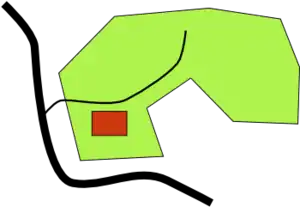 Set the polygon (green area) and shop (red area) as members with empty roles.