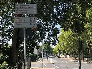 The board guideposts are located in front of a junction. They are designed to be read from a bike without slowing down, similar to motorway signs. There should be one such guidepost for all directions that cyclists might approach the junction from (This can exclude streets that are not part of the cycle network). For each street leading into the junction, its guidepost will probably not include the destinations that this street is coming from.