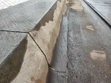 An approach aid is a specially formed kerb that helps buses to approach a platform. When the bus is approaching the platform the curved kerb automatically guides the tires of the bus along the platform. This ultimately helps to reliably minimize the gap between bus and platform which is crucial for wheelchair users, people with strollers and bicycles. The gap width between vehicle and platform determines whether disabled people can enter a public transport vehicle on their own and how difficult it is. Approach aids also reduce tire rub and may prevent wheel hub damage.