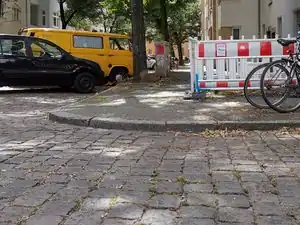 ~10-15 cm | Standard kerbs, (older) crossings with reduced accessibility | Common standard height. Prevents wheelchairs from crossing and represents a barrier for bicycles, strollers, etc. To be found at older intersections or at intersections that were not designed according to accessibility aspects. | ![]() |