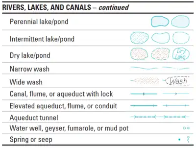 The rendering for a mainly dry watercourse in Geoscience Australia topographic maps is similar.