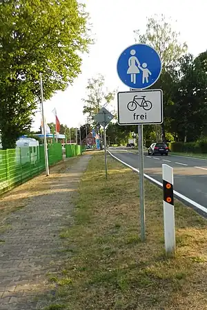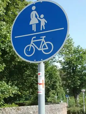 However, sometimes a footway can be used both by pedestrians and by some form of vehicle (usually bicycles). In such cases, the one-way restriction typically only applies to vehicles. A common example of this is a sidewalk on each side of a road (1, 2).