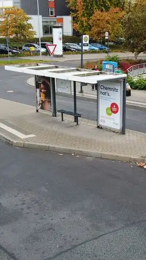 A bus stop with seemingly no information displayed. (From what is visible in the picture)
