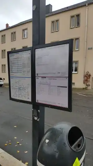 A passenger information display at a bus station. The lower yellow box is actually a button that can be pressed to trigger the speech output. passenger_information_display=yes