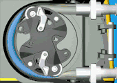 | peristaltic | Peristaltic pump involves a flexible fluid chamber pushed by external roller which both intakes and outputs fluid outside the pump. It is most used in biomedical appliances which requires to let fluid untouched from external component. | ||