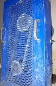 This example focus on coupling an electric motor to centrifugal pump with a belt. Both pump and motor are behind the blue casing |