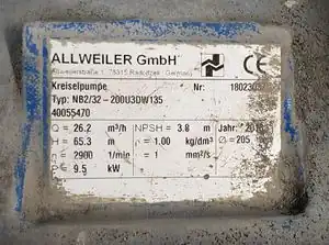 | pressure | <nominal output pressure in bar> | Nominal output pressure the pump is designed to deliver | optional |