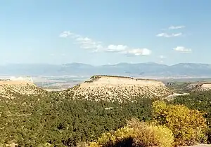 natural=mesa is used to map a mesa: an flat-topped landform that is elevated above the surrounding terrain and surrounded by cliffs. These features are also known as a table, tableland, potrero or tepui.