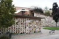 An alternative would be to allow tomb=columbarium on ways; there are very few examples of it.