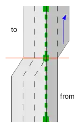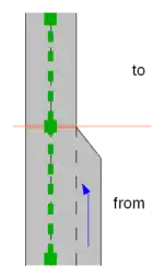 • lower: based on the (assumed or explicitly specified placement-values, determine an appropriate lane offset and connect adjacent lanes (see section below). Treat unconnected lanes of the From Way as ending.