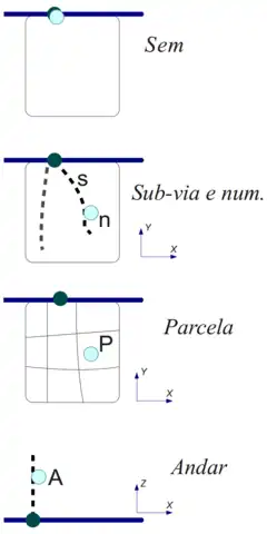 NOTA: o termo "numeração predial" também se aplica aos casos onde a numeração é composta por números e letras ou dois números. Vide caso da numeração predial de Bauru ("quadra e casa").