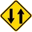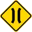 A-21a | Estreitamento de Pista ao Centro | hazard=road_narrows ou traffic_calming=choker