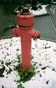 | Hidrante/boca de incêndio: dispositivo que fornece água em guarde quantidade para combate ao fogo. Normalmente é necessário conectar uma mangueira com uma ligação específica (normalmente uniforme em cada país). |