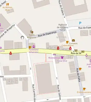 area:highway=pedestrian- uma rua pedonal representada por uma áreahighway=footway- caminho pedonal, exclusivo para pedestresplace=square- uma praça com nome (praça, praceta ou largo numa cidade, vila ou aldeia, que é um espaço público aberto)- Proposed features/Pedestrianised road