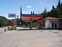 | Via de serviço de acesso a um posto de combustível. | amenity=fuelname=Posto do Brásbrand=Shelltambém uma área com building=yese uma estrada com highway=service