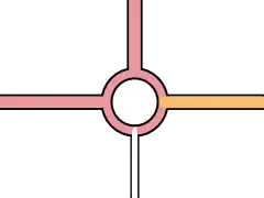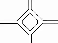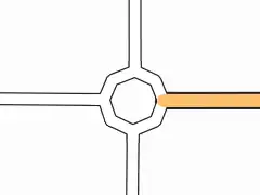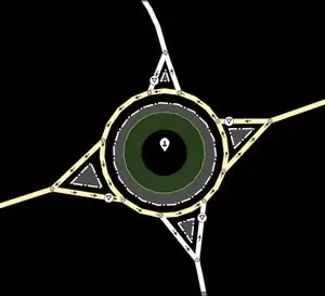 | Uma rotunda de formato padrão com quatro saídas/entradas simples. Cada entrada/saída deve ser ligada à rotunda usando um nó individual, formando um diamante. Uma rotunda de grandes dimensões pode ter oito ou mais nós. | ![]() |