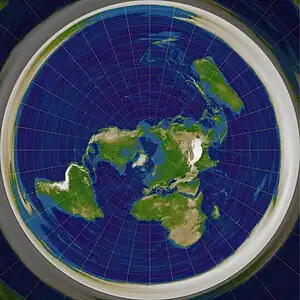 Quoting from Jay from Pufferfish. You'll see that the azimuthal projection has had the south pole cut off. There are two options when showing this projection to allow for the hole in the bottom of the puffersphere: cut off the bottom of the earth in the map or leave the south pole in the map and have the earth's equator slightly further north than it should be.