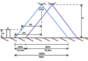 | ● Vh | Width of view at the elevation of the take-off platform for the camera |