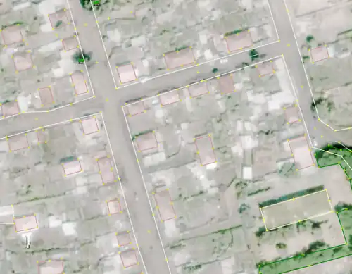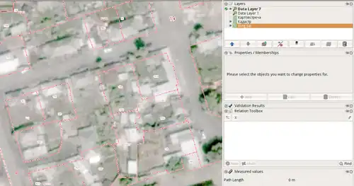 2. Подложка кадастра сильно смещена, а плагин смещений пока не знает. Если вы подвинете подложку Кадастра на правильное место, то придётся делать геометрические операции в голове: "я жму на подложку здесь, значит точка на самом деле там". Если оставить подложку на месте, тоже придётся много упражняться: "дом здесь, значит жмём левее на столько метров".