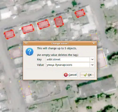 Выделились дома на этой улице. Переписываем значение тэга для всех них.