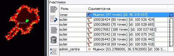 - Определить, что является центром административной единицы, обозначаемой отношением. Найти точку центра и добавить в роли admin_centre в отношение. Убрать неправильного участника отношения.