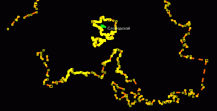 Населённый пункт отображается жёлтым