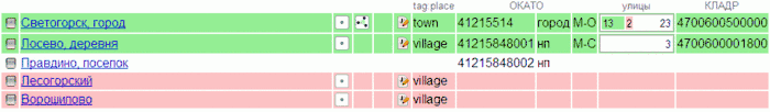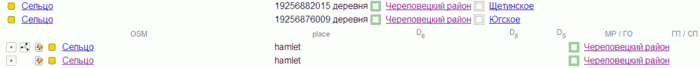 - Поставить точкам населённых пунктов теги okato:user с правильными значениями ОКАТО. При наличии разрешённого источника — нарисовать границы поселений.