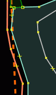 - Вернуть узел на предполагаемое место, руководствуясь кадастром, спутниковыми снимками и здравым смыслом. Проверить, не требуется ли соединение или разъединение линий, удаление лишних узлов: не вводятся ли дополнительные ошибки исправлением старой.