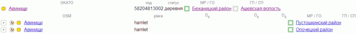 Населённому пункту проставлен код ОКАТО в okato:user, но он находится не в своей административной единице.