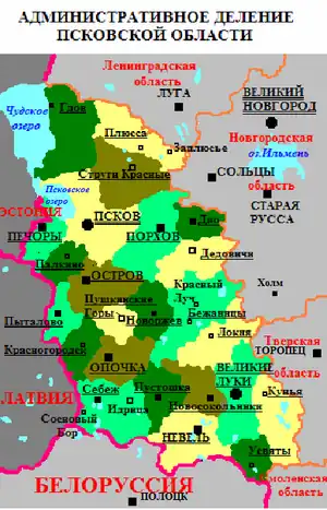 Наша область, как уже упомянуто, состоит из N муниципальных районов. Каждый из них, в свою очередь, содержит примерно по M сельских и одному городскому поселению. Границы районов уже нарисованы по приблизительной карте, а поселения будут очерчены, как только область появится в списках публичной кадастровой карты. Картинки взяты из википедии, способ их создания неизвестен. Данные выпотрошены из закона о муниципальных образованиях от 32 мартобря 2000 года.