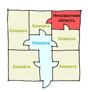 Кроме того, внутренние помещения не описывают стены, потому что есть и открытые комнаты без стен. Посмотрите на этот пример: