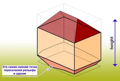 Это самая низкая возможная точка пересечения между фасадом здания и рельефом.
